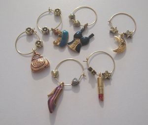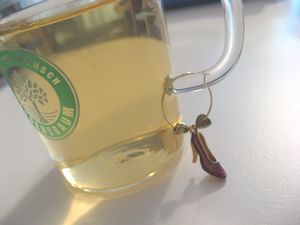 写真左は東京の会社を辞める際後輩に貰った記念品。ワイングラスマーカーというらしい。パーティーの際グラスの脚につけて自分のものの目印にするというもの。うちでパーティーをする機会なぞなさそう(飲み会はあってもな)なので今回デビューさせてみました。それぞれガラスのティーカップの持ち手につけてもらいます(写真中央)。