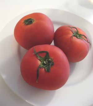 写真右は差し入れにいただいた果物みたいに甘くて美味しいトマト。何もつけなくても十分美味しい。私の食生活は皆さんの差し入れで潤います。