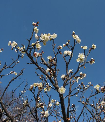舞鶴公園の梅も満開です。紅梅、白梅ともになんと青空に映えることか。