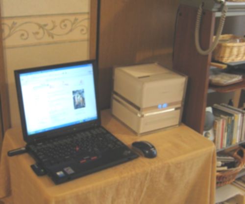 (写真右)パソコンを1台、サロンルーム専用に置いています。メールチェックは3〜5分置きに行っていますので、ほぼリアルタイムでご連絡いただけます。遅れそうだけどバス、電車の中なので電話ができない、などの場合でもメールをお使いいただけます。
