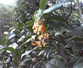 残念ながら、私の住むあたりにはめぼしいキンモクセイの木がありません。大きな公園も近く、木々は沢山あるのですが惜しいことにキンモクセイがない。東京ではあちこちで見かけたのに寂しいことです。てくてく探し歩いたあげく道端にぽつんと植わっていたこの木をみつけ、ようやくゆっくり香りを味わうことができました。甘いけどしつこくない香りが日本人に好まれるのでしょう。まだつぼみのようでしたから、もうしばらくを楽しめることと思います。