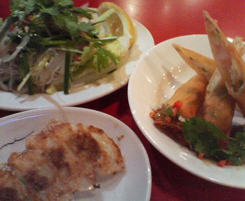 一皿一皿の量はそんなに多くありませんが、本当にどれも安くて美味しい。餃子以外のメニューも揚げ春巻、春雨サラダ、小エビのフライなど充実していて餃子やさんというよりアジアン料理といった感じでした。