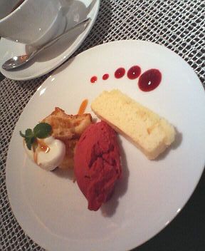 写真右:お腹いっぱいとかいいつつ完食したデザート。プラス300円で頼めます。
